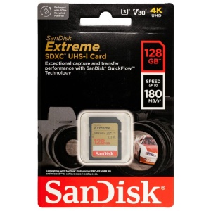 SanDisk Extreme 128GB SDXC spominska kartica + 1 leto RescuePRO Deluxe do180MB/s & 90MB/s branje/zap