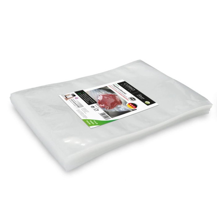 Te kakovostne vakuumske vrečke so zasnovane za zanesljivo in varno shranjevanje živil. Zaradi gladke površine, stabilnega zvara in visoke odpornosti proti trganju so odlična izbira tako za vsakodnevno uporabo kot tudi za zahtevnejše postopke, kot je Sous Vide. Živila učinkovito zaščitijo pred izsušitvijo in zmrzaljo ter pomagajo ohranjati svežino, okus in strukturo.