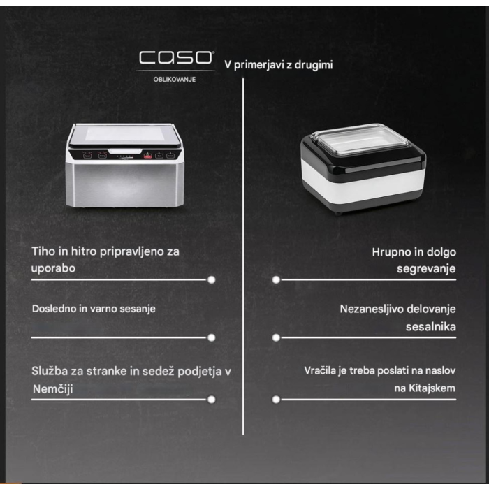• Lastnosti izdelka: Nadzor temperature, funkcija za posode, nastavljiv čas varjenja, prikaz napredka, funkcija mariniranja, 4-batna vakuumska črpalka