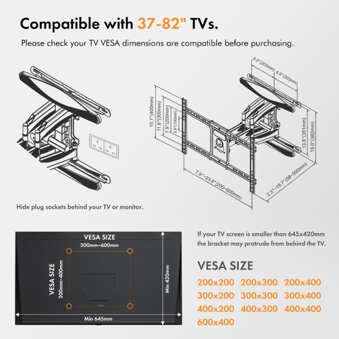 VonHaus 37-82″ Premium nagibni TV stenski nosilec do 45kg
