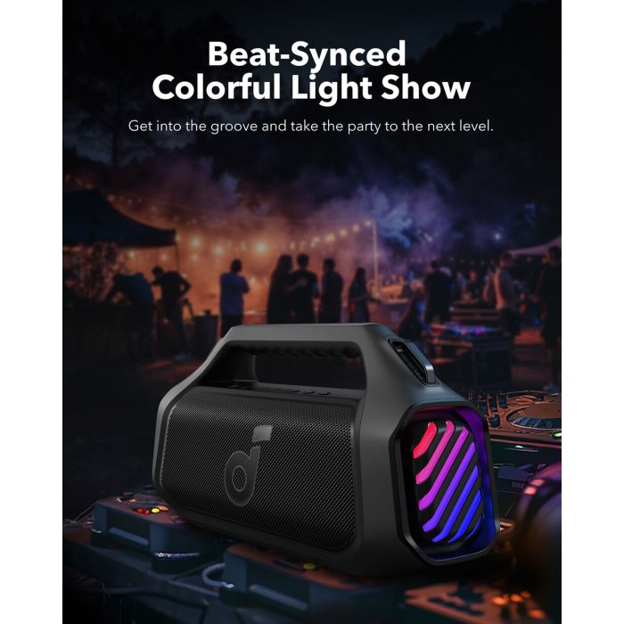 • Vaš zvok, vaša pot: Zunanji zvočnik Boom 2 Plus ima prilagodljiv pro EQ, ki vam pomaga najti popoln zvok za vsako pesem ali vzdušje. Z PartyCast 2.0 lahko povežete do 100+ zvočnikov in popeljete zabavo na višjo raven.