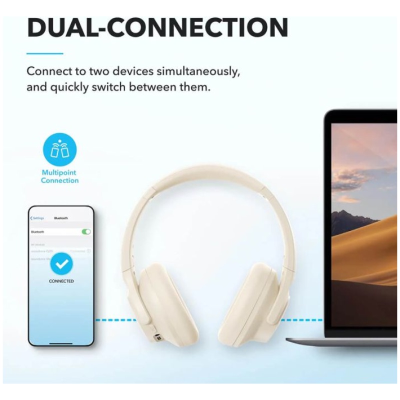 Povežite se z dvema napravama hkrati z Bluetooth 5.0 in takoj preklapljajte med njima. Ne glede na to, ali delate na prenosniku ali morate sprejeti telefonski klic, se bo zvok samodejno predvajal iz naprave, s katero se želite slišati. - Aplikacija za prilagajanje EQ:
