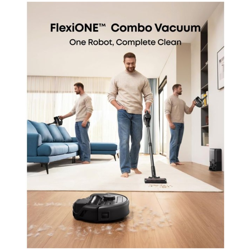 Inovativna večnamenska zasnova FlexiONE™ 3-v-1: Doživite izjemno prilagodljivost čiščenja z zasnovo FlexiONE™ 3-v-1. Brezhibno preklapljajte med ročnim, pokončnim in robotskim sesanjem ter imejte popoln nadzor v vsaki situaciji – vse z eno samo napravo.