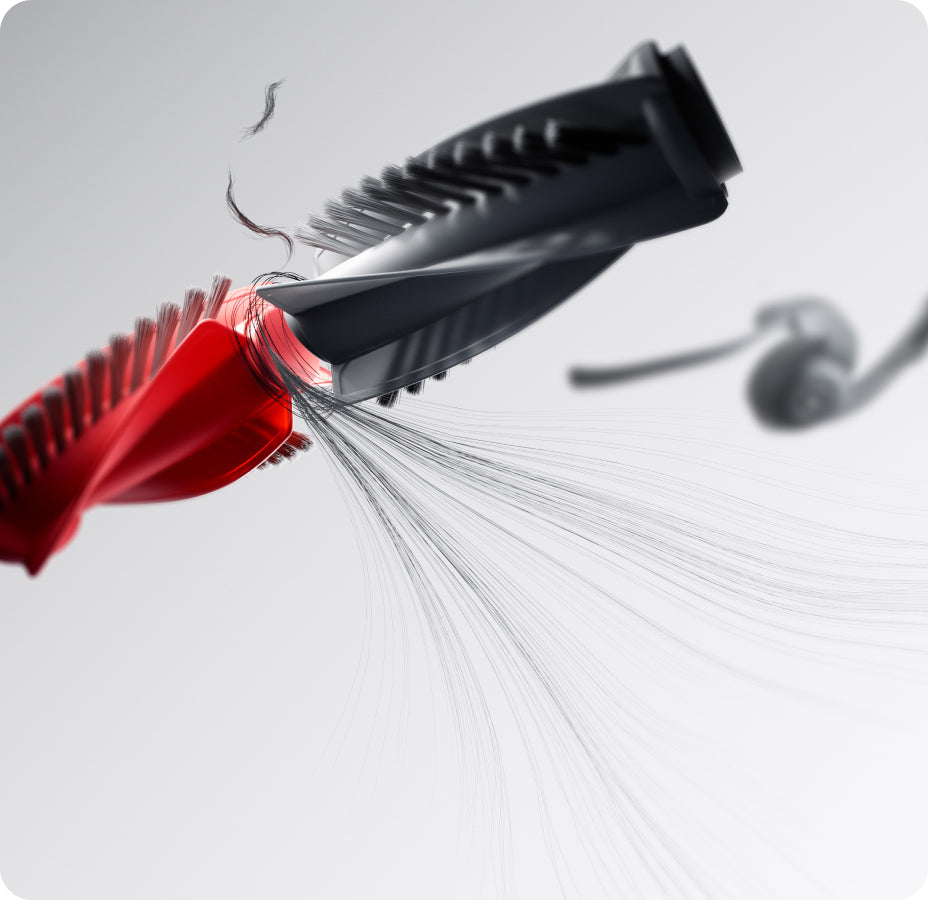 Glavna krtača DuoDivide je zasnovana z dvema kratkima valjema s ščetinami in posebnimi lamelami, ki usmerjajo dlake proti sesalnemu kanalu in stran od osi krtače. Po internih testih Roborock to pomeni 0 % zapletanja las in 100 % stopnjo odstranitve dlak, kar je idealno za domove z dolgolasimi člani in hišnimi ljubljenčki.