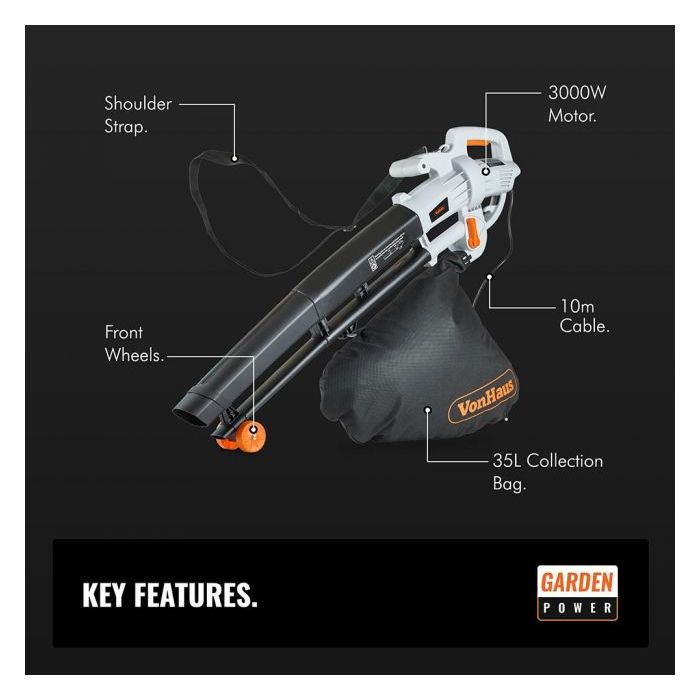 VonHaus 3000W električni puhalnik listja 3 v 1, 35L