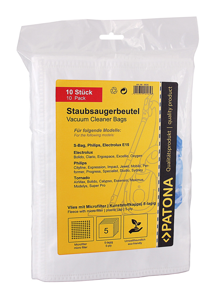 Set 10 nadomestnih vrečk in mikrofiltra za vakuumske sesalnike AEG, Electrolux, Philips in druge, s katerim boste prihranili vaš dragoceni čas in denar. Vrečka je izdelana iz petplastnega mikrovlaknastega materiala. Mikrofilter zagotavlja učinkovito predfiltriranje in enakomerno razporeditev prahu v vrečki, zato je pretok zraka stalen, vse dokler se vrečka povsem ne napolni.