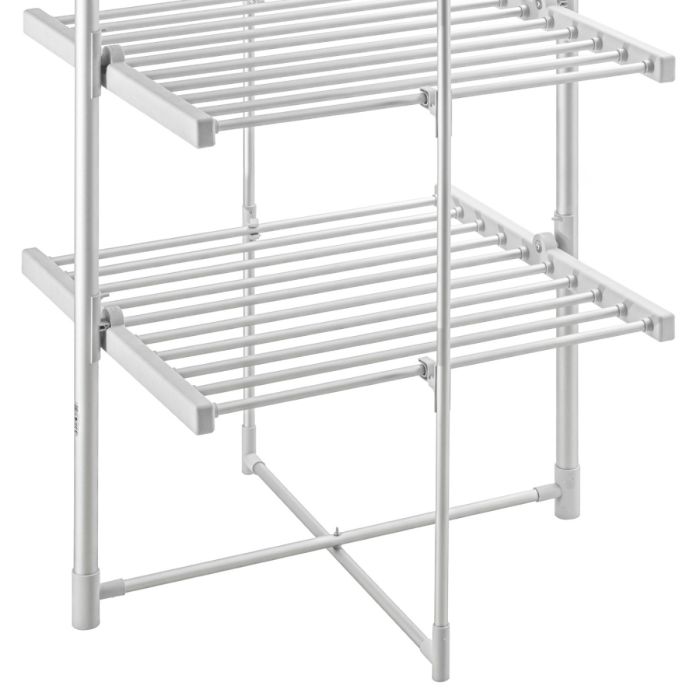 Električni in zložljiv: Vgrajen grelni sistem v vsaki palici za učinkovito sušenje ter zložljiva zasnova za enostavno shranjevanje.