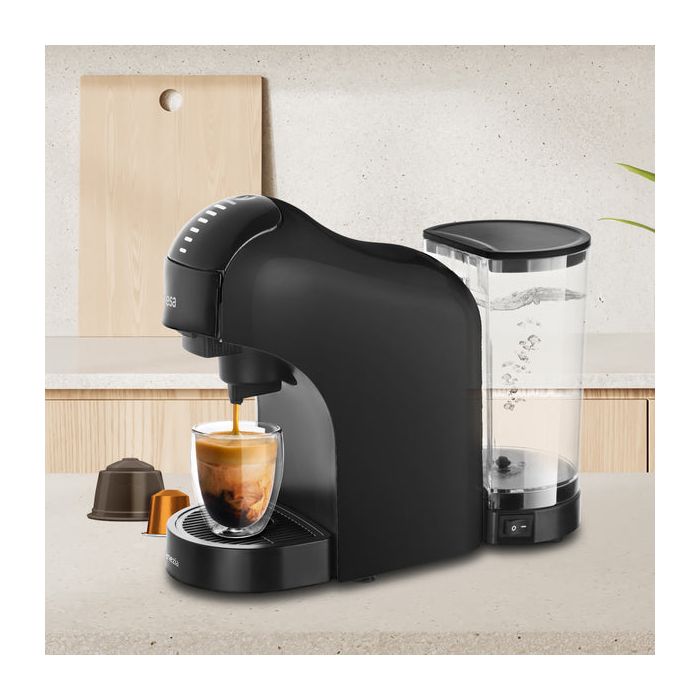 Odstranljiv rezervoar za vodo olajša dolivanje in čiščenje, združljivost z mleto kavo in kapsulami Dolce Gusto, Nespresso ter Delta pa vam prinaša raznolikost pri izbiri.
