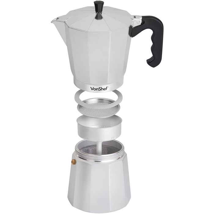 - Visokokakovostna, trpežna aluminijasta konstrukcija z ergonomskim ročajem vključuje nadomestno silikonsko tesnilo in filter.