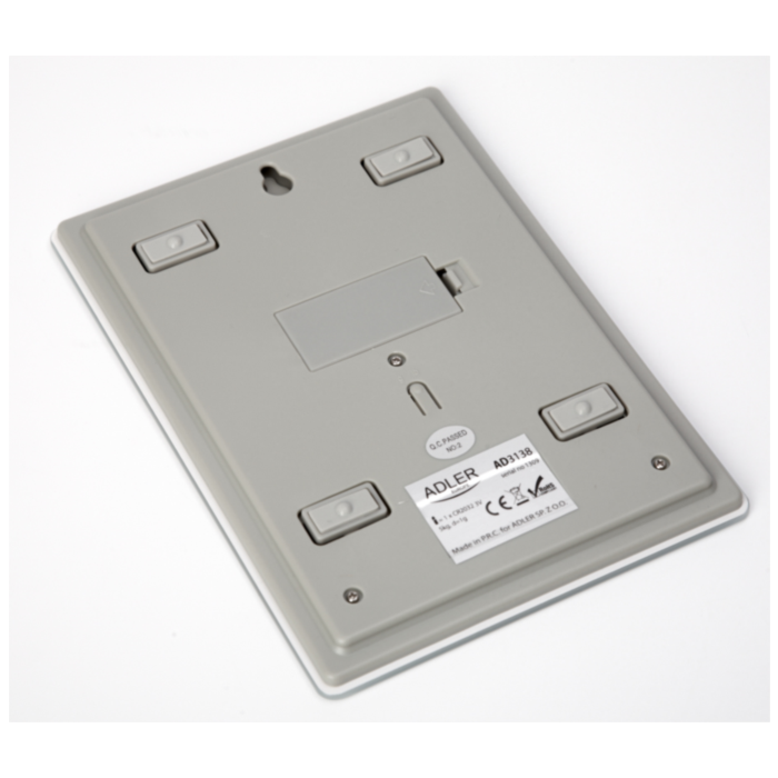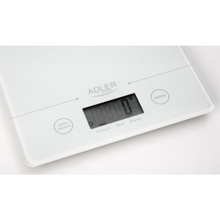 Elektronska kuhinjska tehtnica Adler ima maksimalno kapaciteto 5 kg in natančnost 1 g. Omogoča natančno merjenje sestavin, ki jih uporabljamo pri kuhanju. Zaradi svoje oblike in velikosti je zelo priročna za shranjevanje in ima možnost da se samodejno ali ročno izklopi ter je opremljena z zelo berljivim LCD zaslonom.