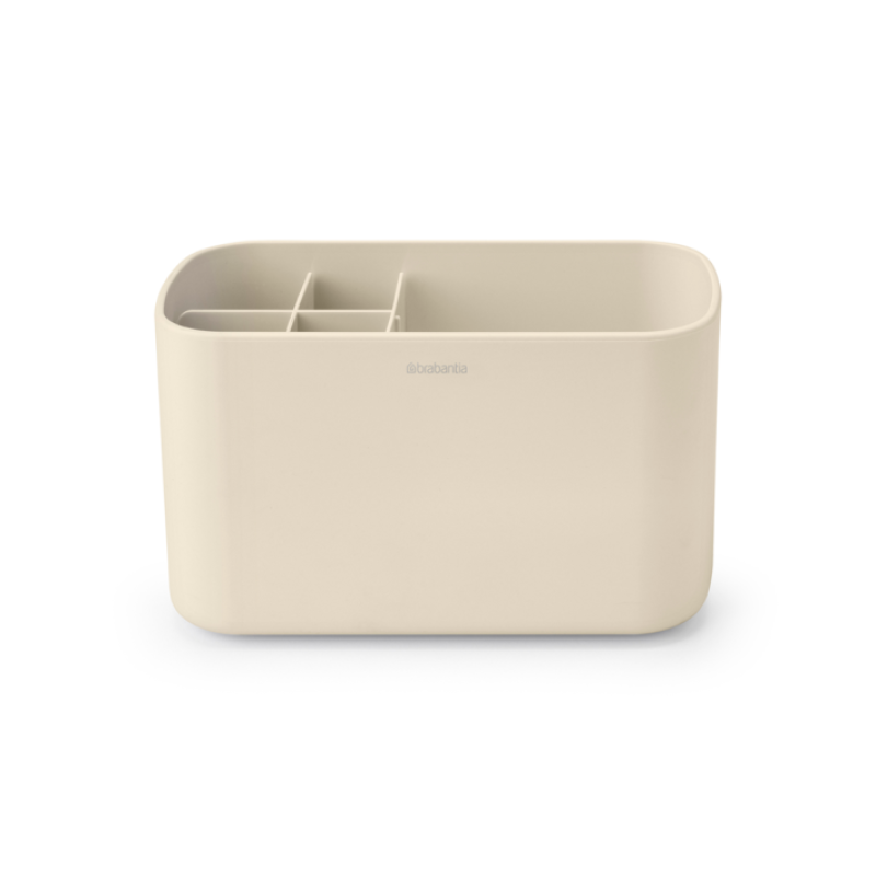 Ne glede na to, ali gre za lase, zobe ali kožo… S tem elegantnim kopalniškim pripomočkom Brabantia ReNew Bathroom Caddy lahko organizirate vse svoje kopalniške rituale. Kompaktna zasnova, a dovolj velika, da vanjo lahko spravite več (električnih) zobnih ščetk, cevk, krtačk in drugega. Izdelan iz materialov, odpornih proti koroziji, ta kadilnik dela čudeže za vaš umivalnik. Varčuje s časom in prostorom!