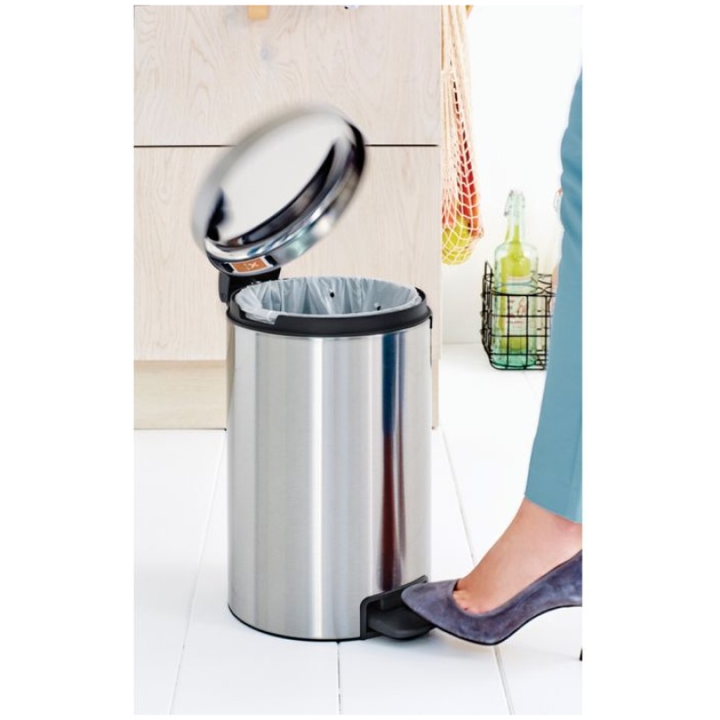 Brabantia koš s pedalom, 12 l predstavlja univerzalno rešitev za manjše prostore, saj zahvaljujoč svoji priročni velikosti ne bo zavzel veliko prostora. Zahvaljujoč svoji sodobni obliki je primeren tako za v kopalnico ali kuhinjo, kot tudi za v domačo pisarno ali kar v dnevno sobo.