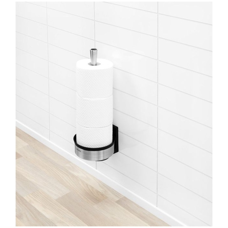 Elegantno stojalo iz nerjavečega jekla v mat izvedbi, blagovne znamke Brabantia. S tem dodatkom bo toaletni papir vedno pri roki, v zalogi treh kosov.