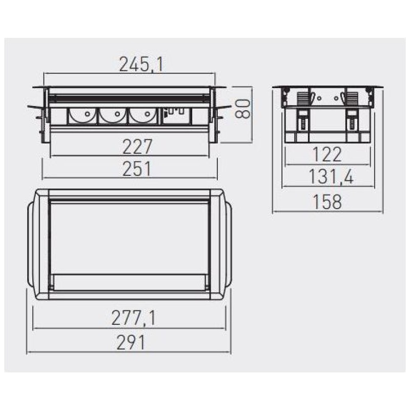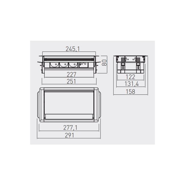 - Sodobna vgradna vtičnica za pisarne, konferenčne dvorane ali druge delovne prostore.