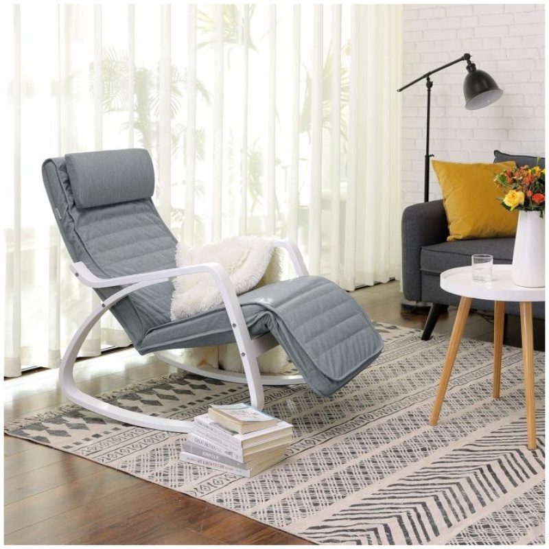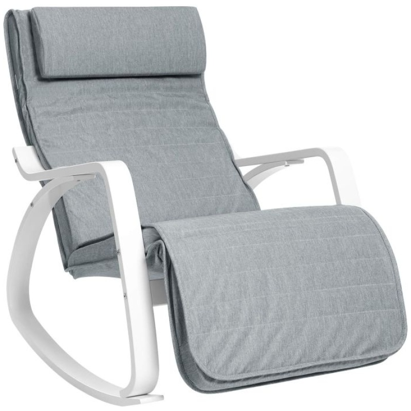 SONGMICS gugalni stol iz brezovega lesa – nastavljiv naslon za noge, do 150 kg, svetlo siv / bel