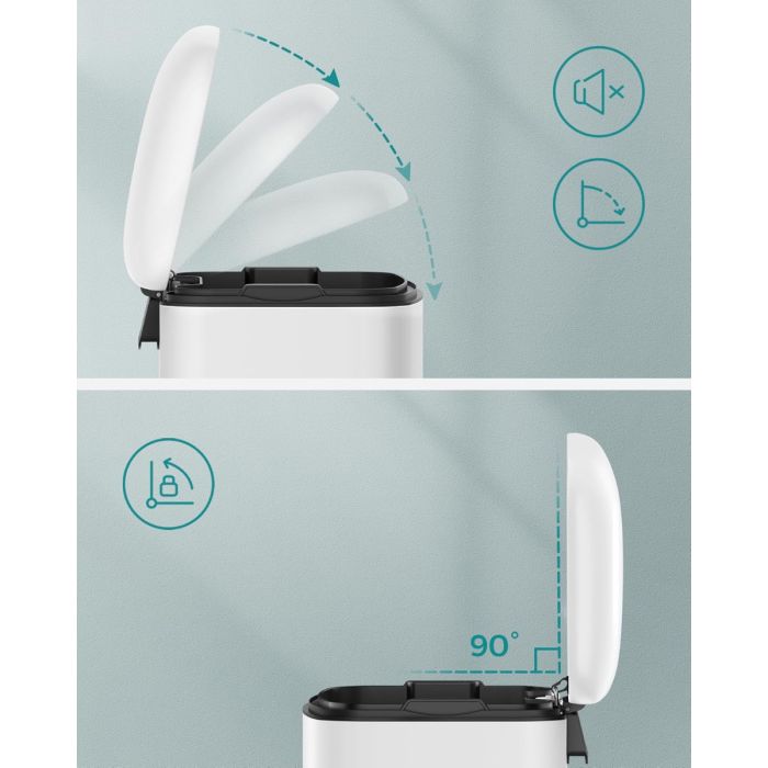 Zakaj bi koš za odpadke kazil izgled vaše kopalnice ali kuhinje? SONGMICS 30-litrski kovinski koš v beli barvi z minimalističnim dizajnom se odlično poda v sodoben dom. Kljub kovinskemu ohišju deluje nežno – zahvaljujoč mehkemu mehanizmu se pokrov zapira počasi in tiho. Ko izvajate večje čiščenje, lahko pokrov ročno pustite odprt – kasneje ga zaprete z rahlim pritiskom. Notranje plastično vedro s stranskimi ročaji je snemljivo in omogoča enostavno praznjenje ter čiščenje. Dodatna odprtina v notranjosti zadrži plastično vrečko na mestu, tudi če se raztrga. Pametna rešitev za red in svežino brez neprijetnih vonjav – tudi ob nepričakovanem obisku prijateljev.