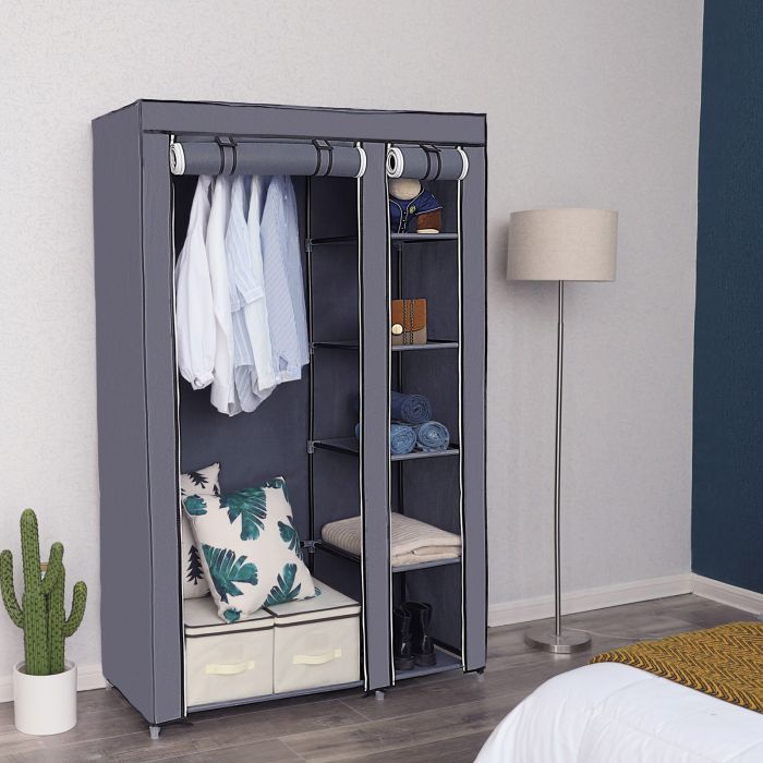 SONGMICS prenosna garderobna omara, siva, LSF007G