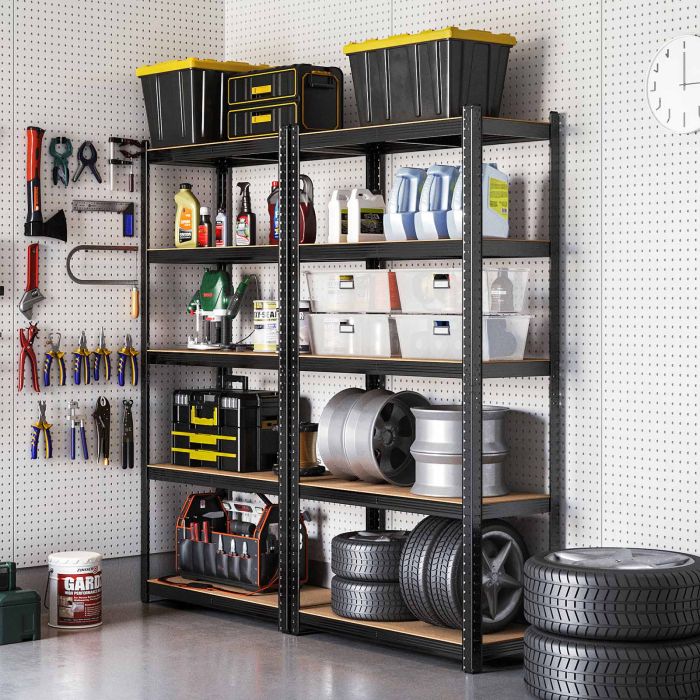Regalna enota z dimenzijami 50 x 100 x 200 cm in skupno nosilnostjo 600 kg se lahko uporablja v garaži, skladišču, kleti ali gospodarskem prostoru za organizacijo vsega orodja in opreme
