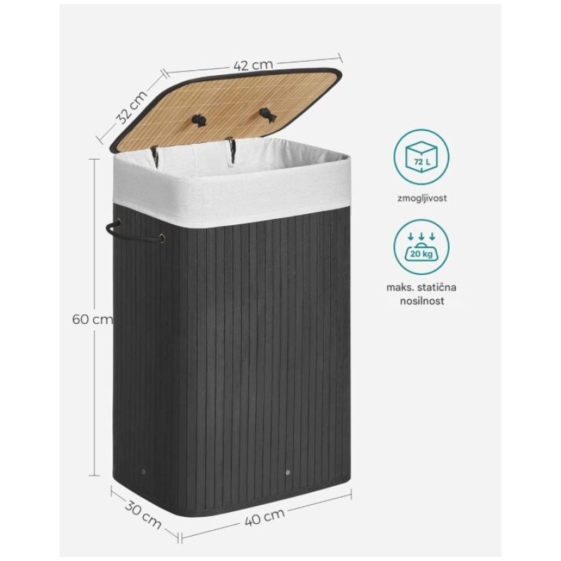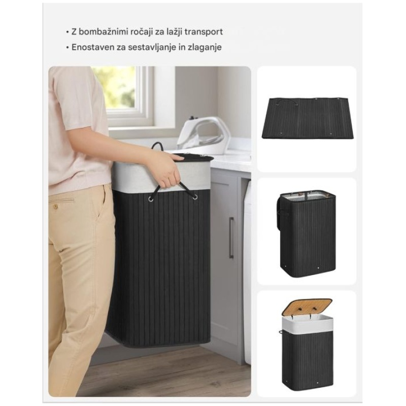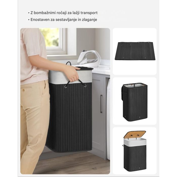 SONGMICS zložljiva bambusova košara za perilo s pokrovom – črna, 72 L