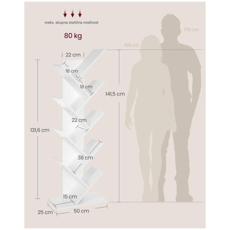 Iščete izviren način za razstavljanje svojih najljubših knjig? Ta moderna knjižna omara z 9 nivoji in značilno obliko drevesa bo v vaš dom vnesla red, toplino in stil.