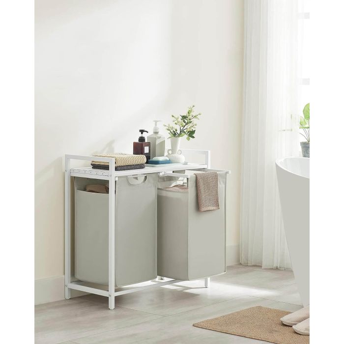2 predelka za ločeno shranjevanje: ta koš za perilo ima skupno prostornino 92 L, pri čemer ima vsaka košara 46 L. Njegova zasnova z 2 predelki vam omogoča, da perilo organizirate po vrsti in ločite svetlo perilo od temnega