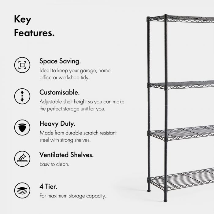 Izkoristite svoj domači prostor in lepo organizirajte svojo delavnico, domačo pisarno ali garažo z našimi 4-stopenjskimi žičnimi policami.