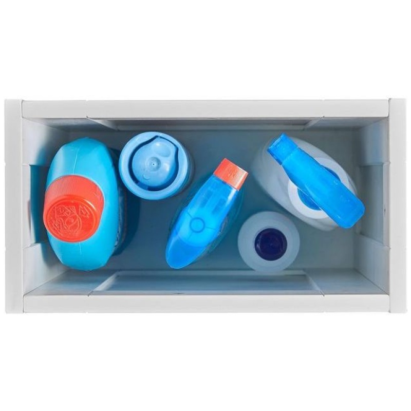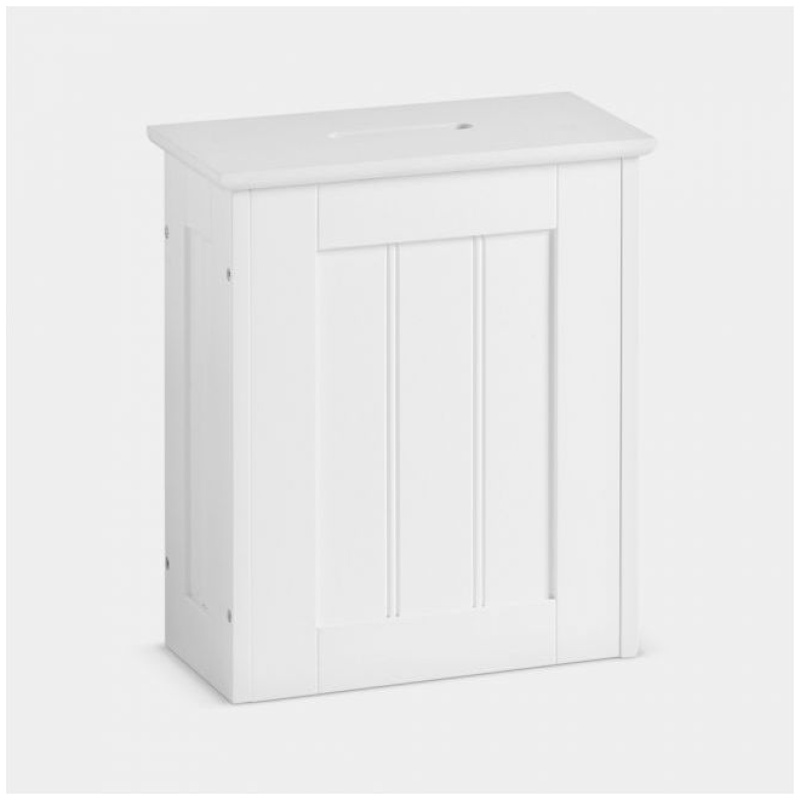 Zaradi dvižnega pokrova bo zavzel zelo malo prostora, vendar odličena rešitev za lično shranjevanje čisttilnih sredstev ali toaletnega papirja.