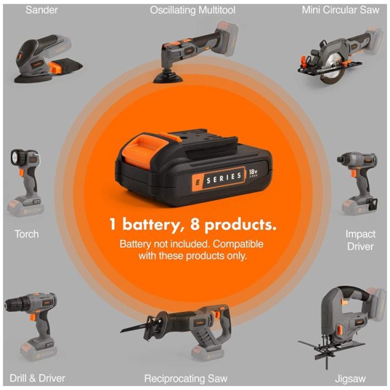 Baterijo in polnilnik lahko uporabljate z vsemi drugimi orodji iz kolekcije električnih orodij VonHaus Series-E.