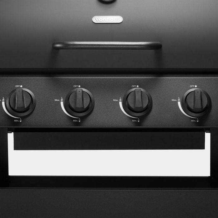 Kljub kompaktni zasnovi je ta plinski žar vse, kar potrebujete za raznolik jedilnik. Z ločeno nadzorovanimi štirimi gorilniki lahko hkrati pripravljate različne jedi. Razdelite plinsko rešetko velikosti 60 cm x 36,5 cm na območje za počasno kuhanje, območje srednje toplote za nežno pečenje mesa in območje visoke temperature za zapečenje steakov. Pa ostane še eden na voljo!