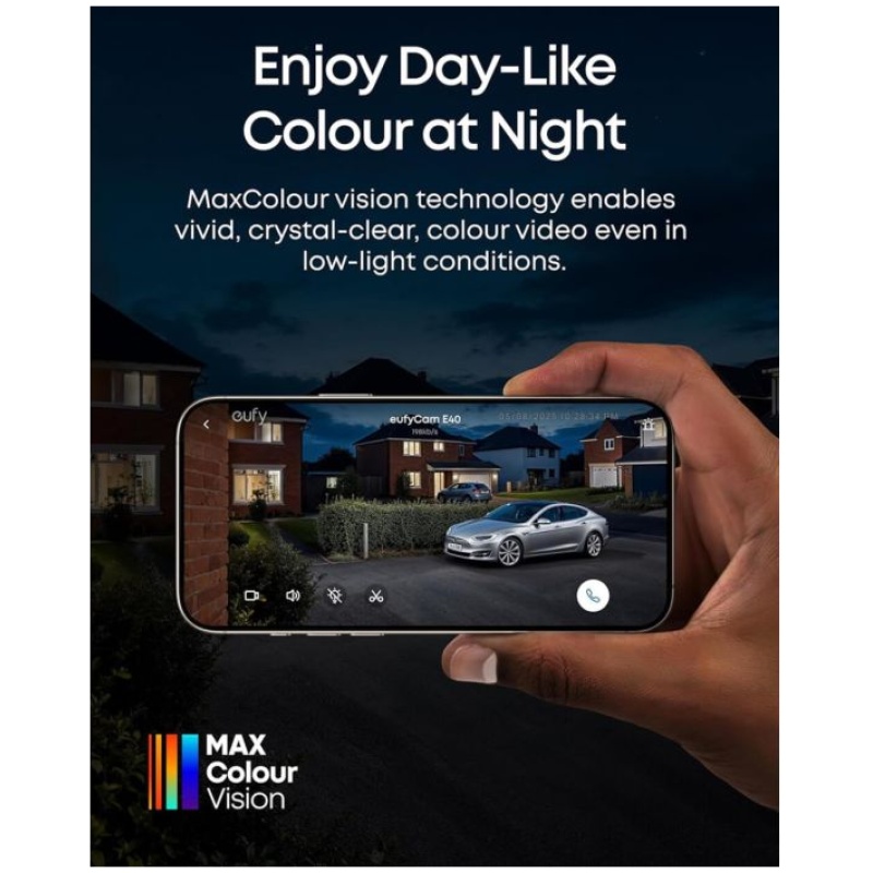 Kamera z ločljivostjo 2K in tehnologijo MaxColour Vision omogoča zajemanje živih, barvnih posnetkov tudi ponoči.