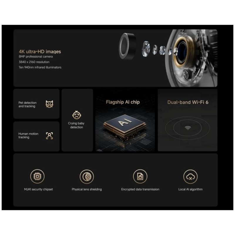 Vgrajeni AI čip omogoča hitro lokalno obdelavo s kar 1 TOPS zmogljivosti za natančno zaznavanje. Kamera podpira naslednjo generacijo Wi-Fi 6, kar zagotavlja višjo hitrost prenosa in bolj stabilno povezavo z nižjo zakasnitvijo.