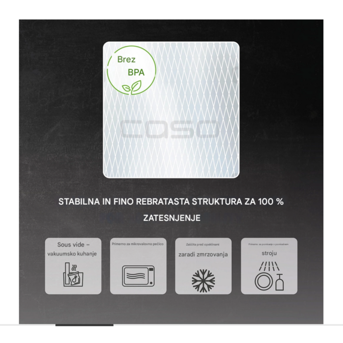 Primerno za Sous Vide (odporno na kuhanje do 100 °C, največ 8 ur)