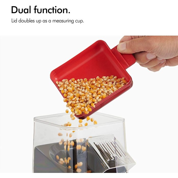 - Sistem kroženja vročega zraka segreva in razbija jedrca brez potrebe po olju ali maslu.