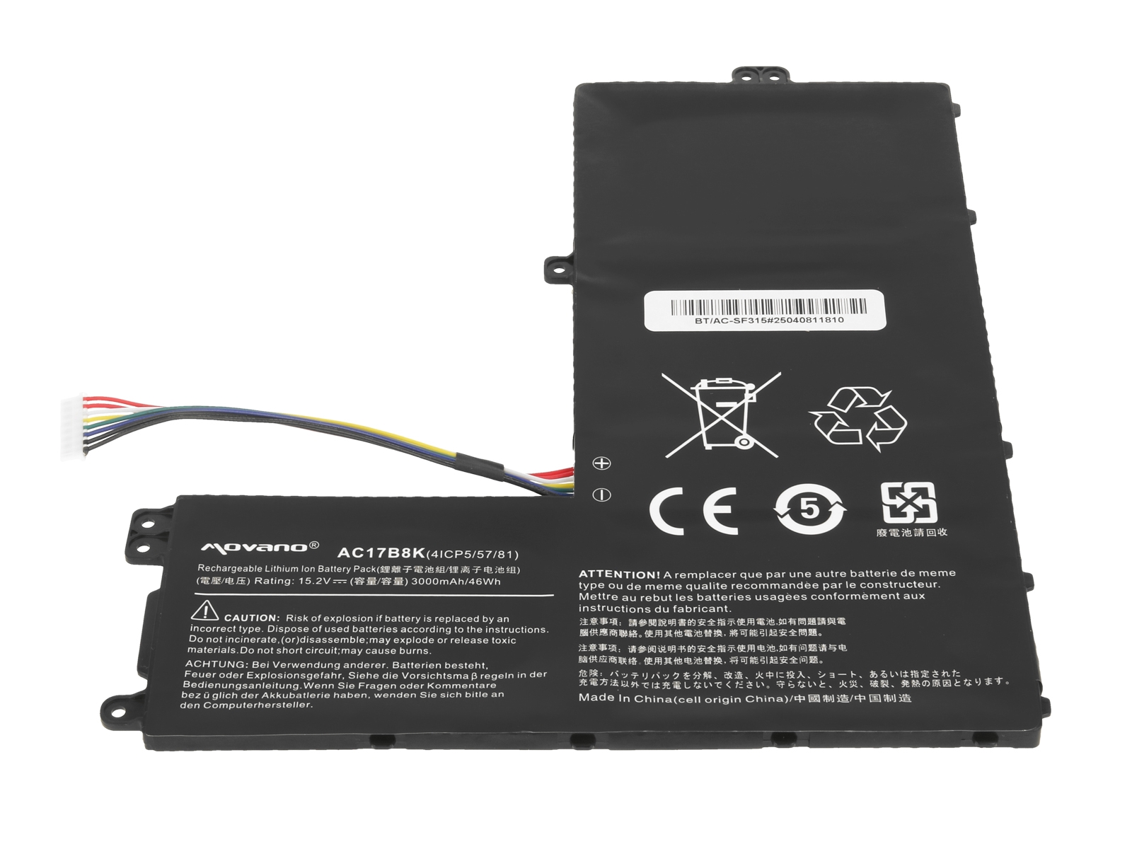 • Nadomestna baterija je izdelana po zasnovi in tehnologiji proizvajalca Movano, kar zagotavlja odlično kvaliteto