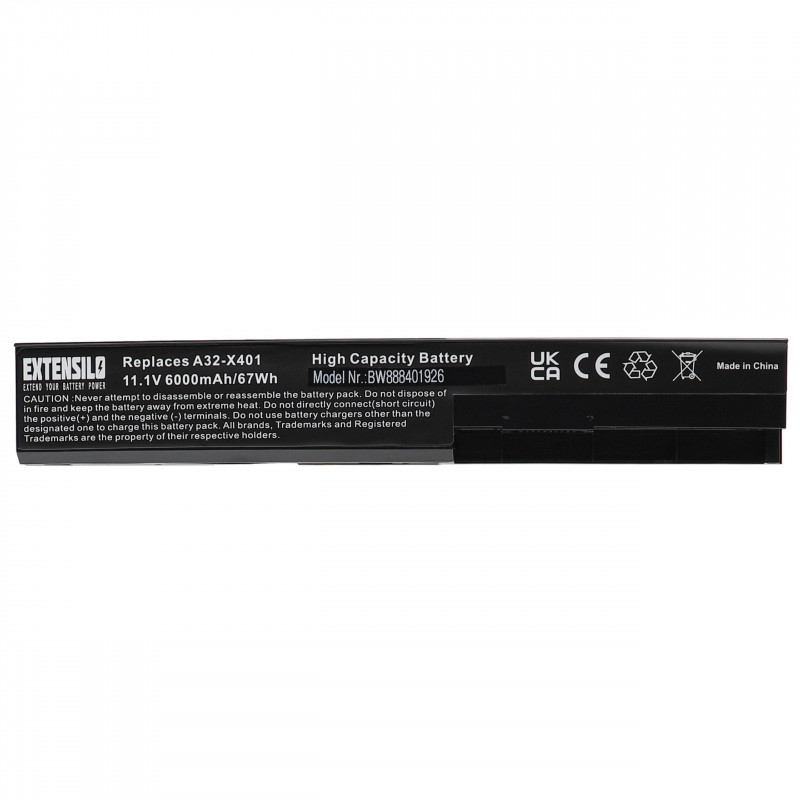 - Nadomestna baterija je zasnovana po tehnologiji nemškega proizvajalca Extensilo, kar zagotavlja premium kvaliteto. Baterija ima vgrajene Samsungove Li-Ion celice večje kapacitete (tip 18650-30A), saj so namesto običajnih celic kapacitete 2.200 mAh uporabljene zmogljivejše celice s kapaciteto 3.000 mAh. Zato ima baterija kljub nespremenjenim zunanjim dimenzijam precej večjo kapaciteto od originalne. To zagotavlja občutno daljši čas delovanja prenosnika (cca. 35%) med posameznimi cikli polnjenja.