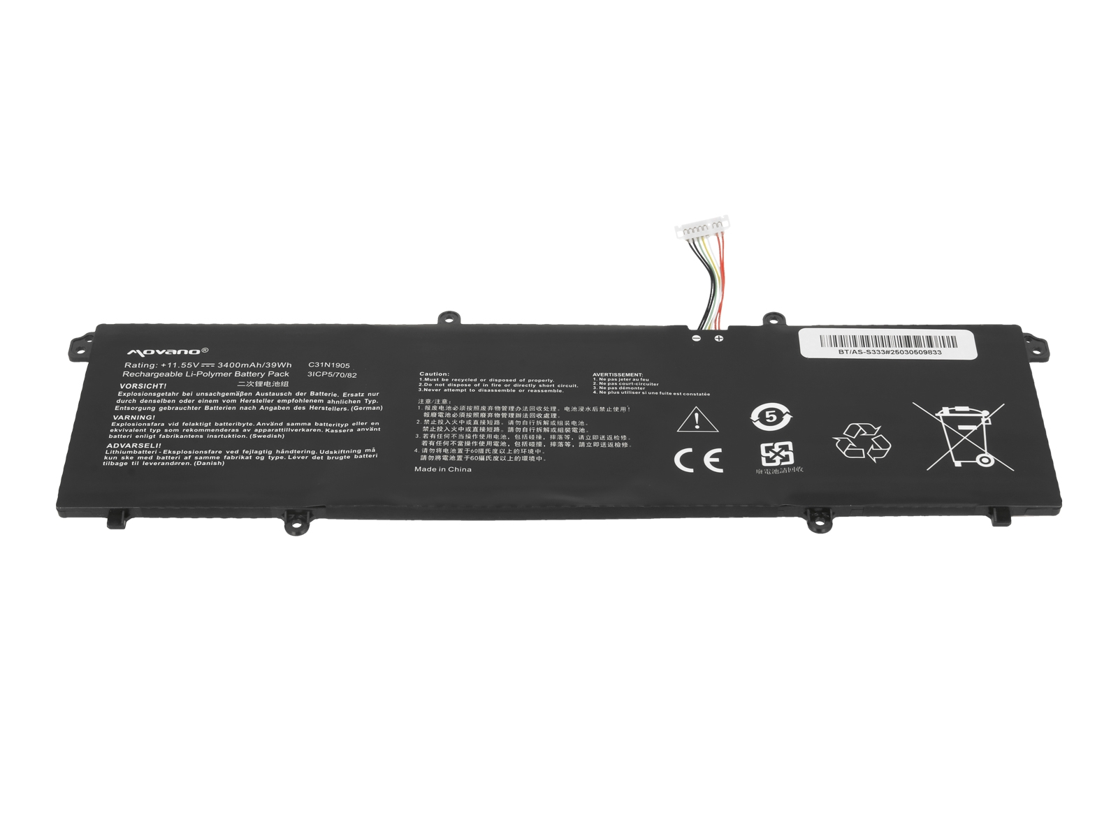 • Nadomestna baterija je izdelana po zasnovi in tehnologiji proizvajalca Movano, kar zagotavlja odlično kvaliteto