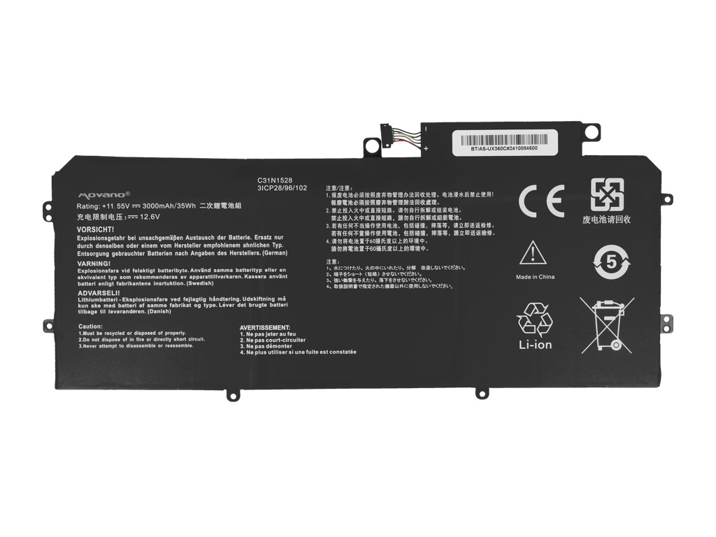 - Nadomestna baterija je izdelana po zasnovi in tehnologiji proizvajalca Movano, kar zagotavlja odlično kvaliteto