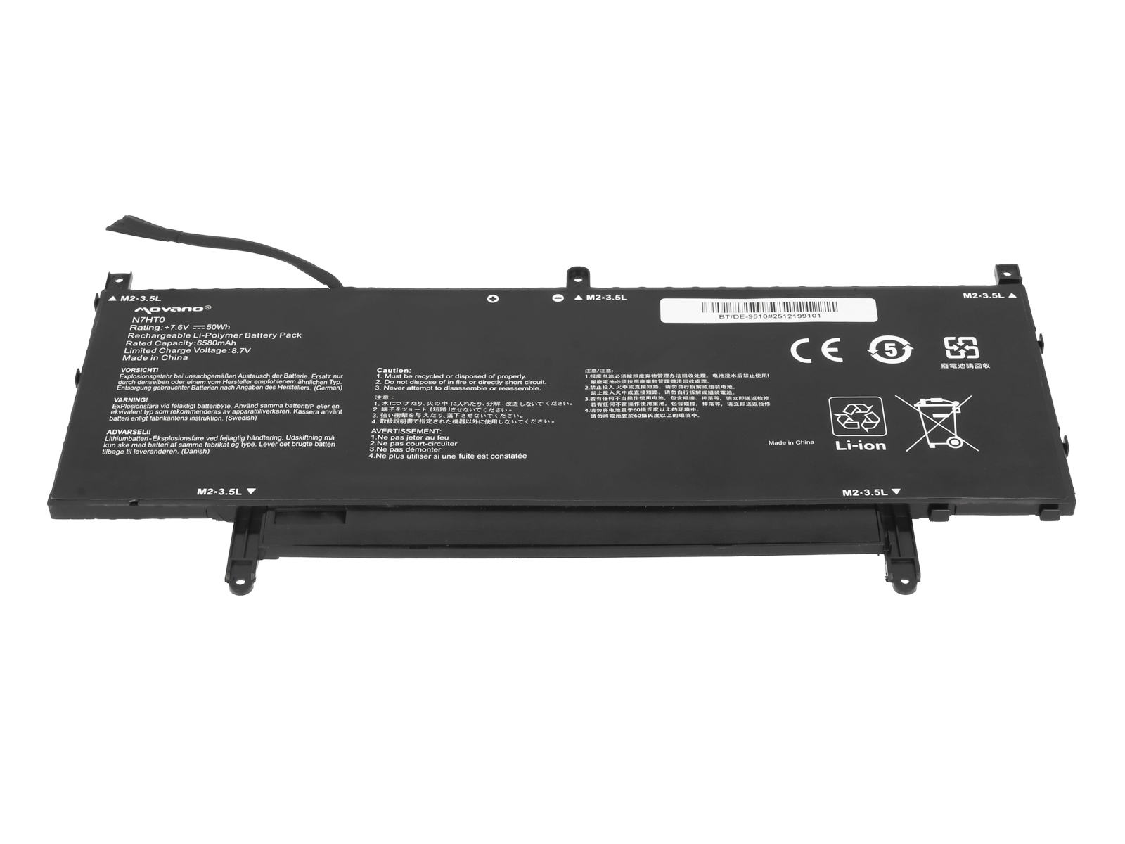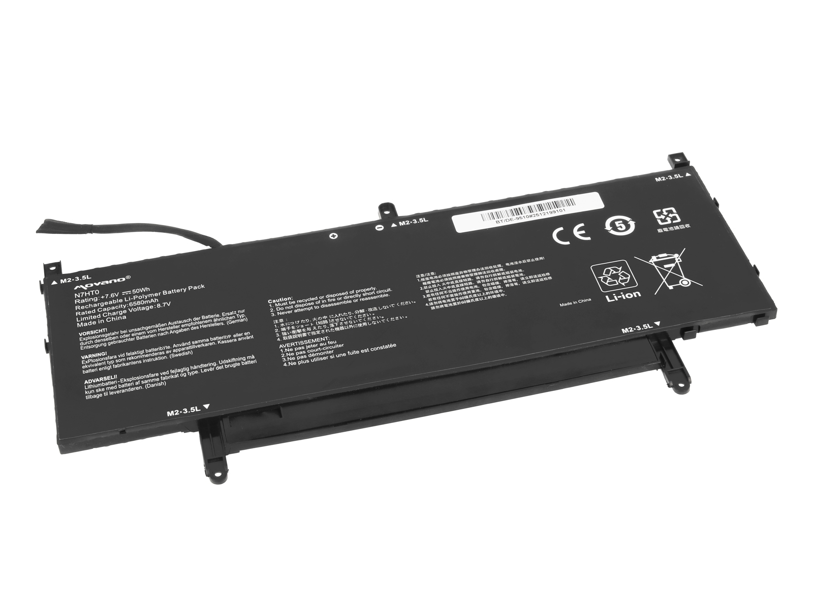 - Nadomestna baterija je izdelana po zasnovi in tehnologiji proizvajalca Movano, kar zagotavlja odlično kvaliteto