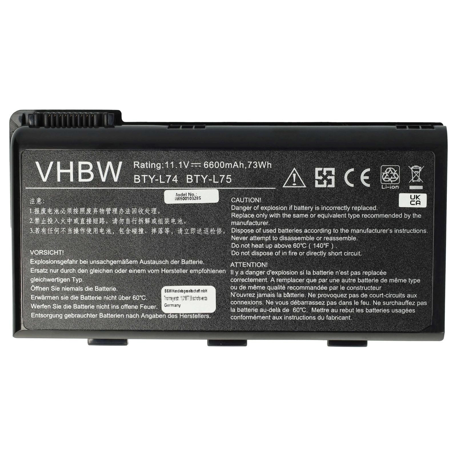 - Nadomestna baterija je izdelana po zasnovi in tehnologiji proizvajalca VHBW, kar zagotavlja odlično kvaliteto