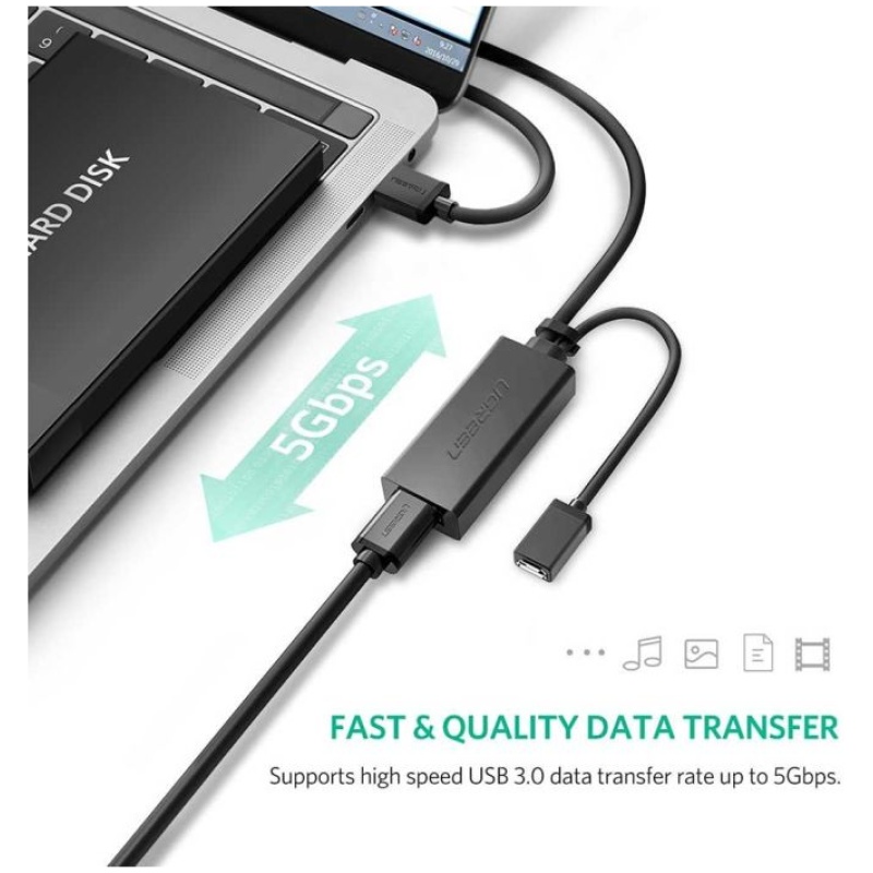 Ugreen USB podaljšek z možnostjo napajanja, 10M