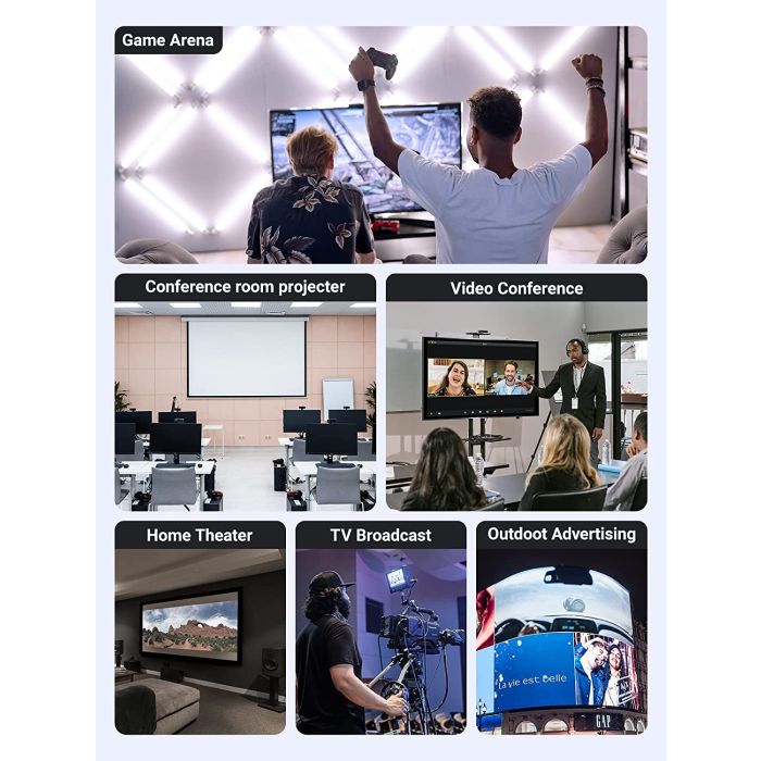 Prav tako je povratno združljiv z različicami HDMI 2.0b/2.0a/1.4/1.3/1.2/1.1, tako da bo še vedno deloval tudi z vsemi vašimi starimi napravami in pripravljen za prihodnje potrebe.