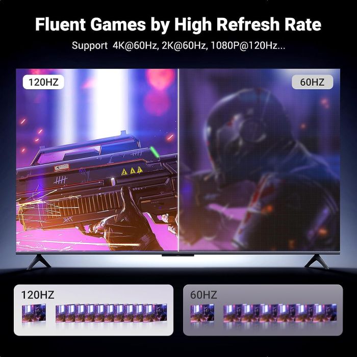 Ponuja podporo za ločljivost 4K 60Hz, kar zagotavlja jasne in podrobne slike. Podpira tudi ločljivosti 2K 144Hz in 1080p 240Hz.