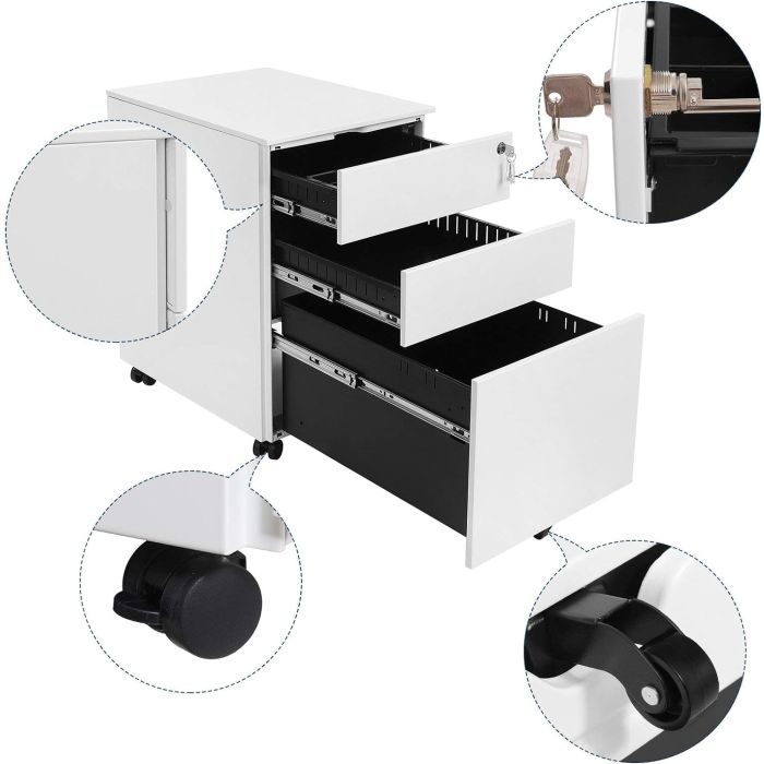 - Varnost je na prvem mestu: Potrebujete varno zavetje za pomembne dokumente? Tukaj jih lahko zaklenete. Brez ročaja, preprosto izvlecite predale s strani gladko. Zaščitene zaobljene vogale preprečujejo udarce.