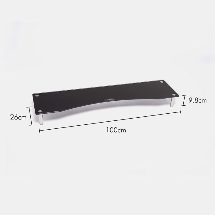 Izjemno dolg stekleni podstavek za monitor, ki je opremljen z gumijastimi nogicami za zaščito mize in preprečevanje zdrsa, bo zmanjšal obremenitev vratu in povečal produktivnost.