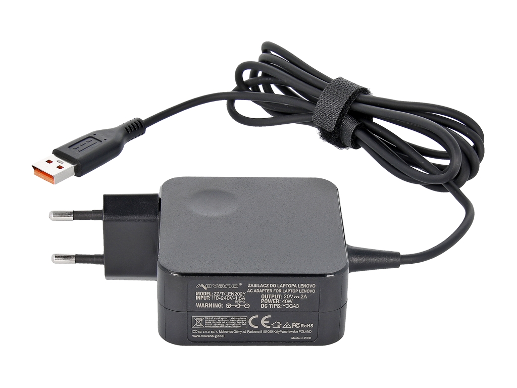 Polnilec za prenosnike Lenovo, 40W / 20V / 2A / priključek USB