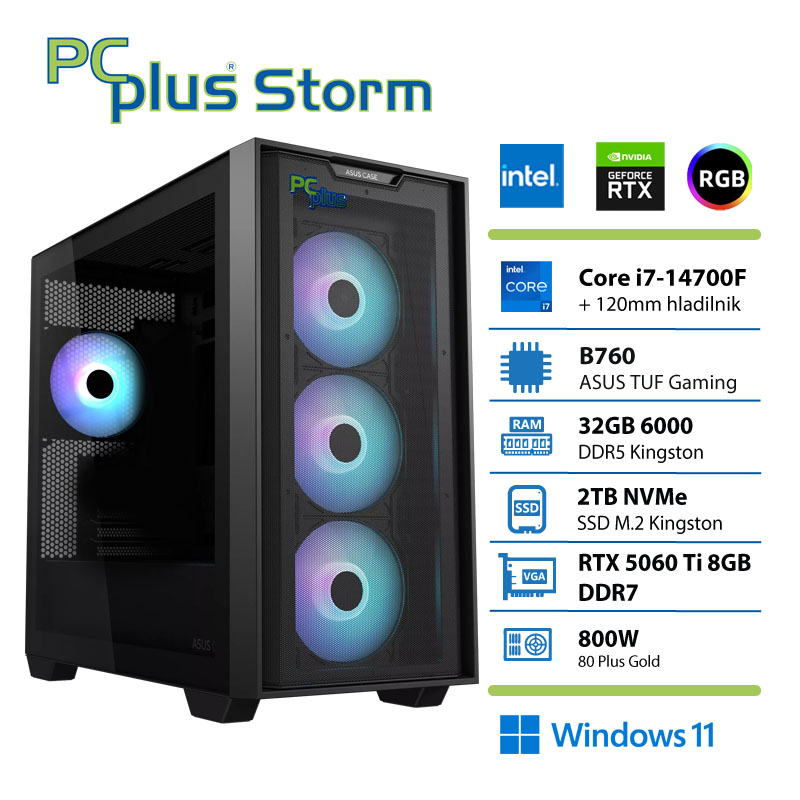 PCPLUS Storm Intel i7-14700F 32GB 2TB NVMe SSD RTX 5060 Ti 8GB Windows 11 Home gaming namizni računalnik