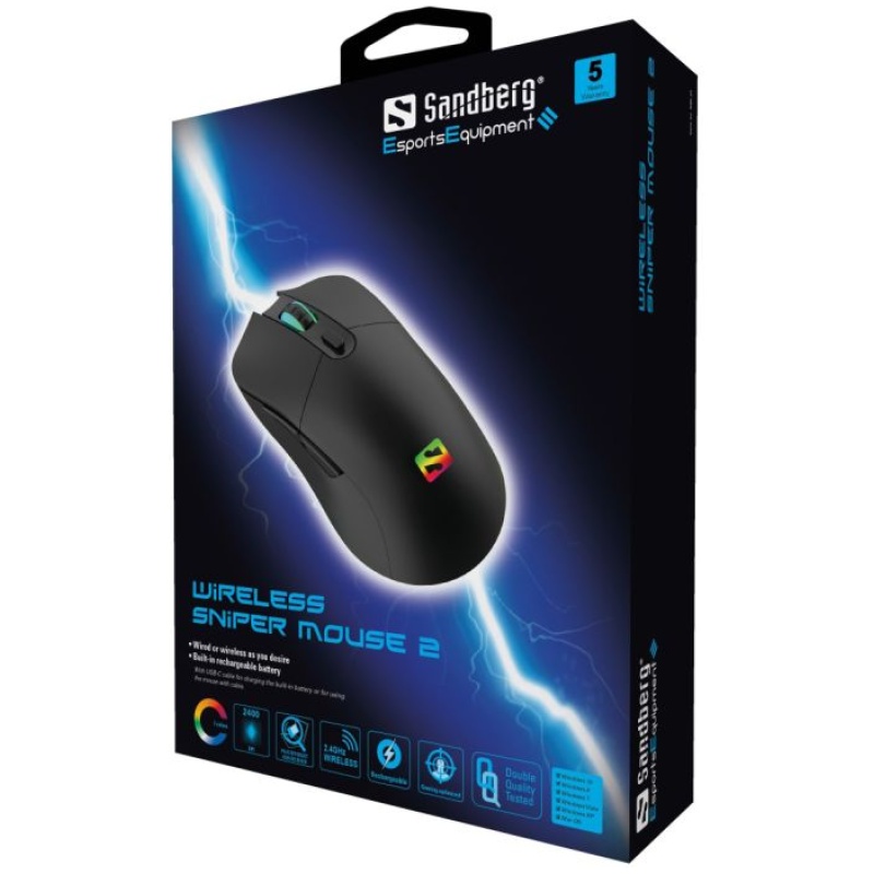 Miško Sandberg Wireless Sniper Mouse 2 lahko uporabljate z ali brez kabla, kakor vam je ljubše.