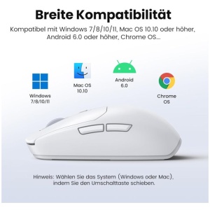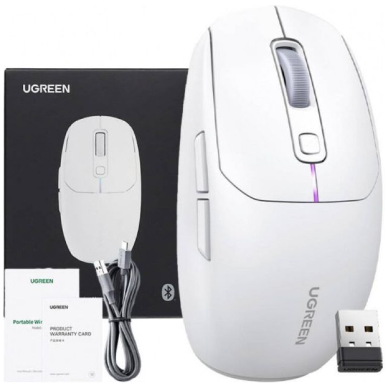 Ugreen brezžična miška 5000 DPI 2.4G+BT – bela