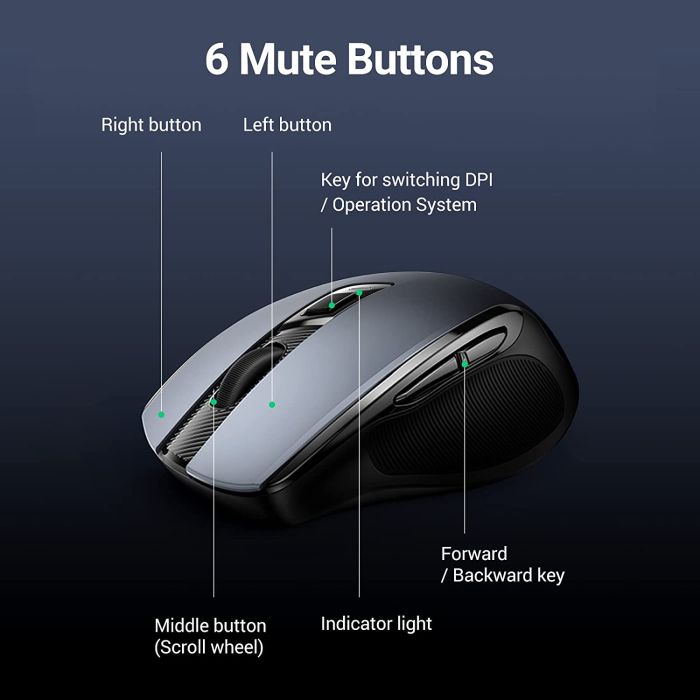 Brezžična miška UGREEN ergo, vključno s standardnimi gumbi miške in dodatnimi gumbi za nazaj/naprej, olajša delo z računalnikom z Windows ali Mac.