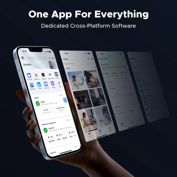 Upravljajte svojo shrambo in dostopajte do svojih datotek iz katere koli svoje naprave z našo programsko opremo po meri. Ni vam treba prenesti več orodij ali uporabiti zapletene programske opreme tretjih oseb. Na voljo za Android, iOS, Windows, Mac, spletne brskalnike in pametne televizorje. (Za boljšo izkušnjo sledite navodilom za nadgradnjo vdelane programske opreme.)